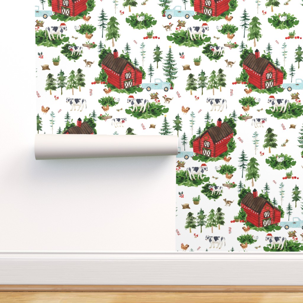 Commercial Grade Wallpaper 27ft X 2ft Holidays Farm Christmas Animals Winter Farmhouse Santa Cloth Traditional Wallpaper By Spoonflower Walmart Com